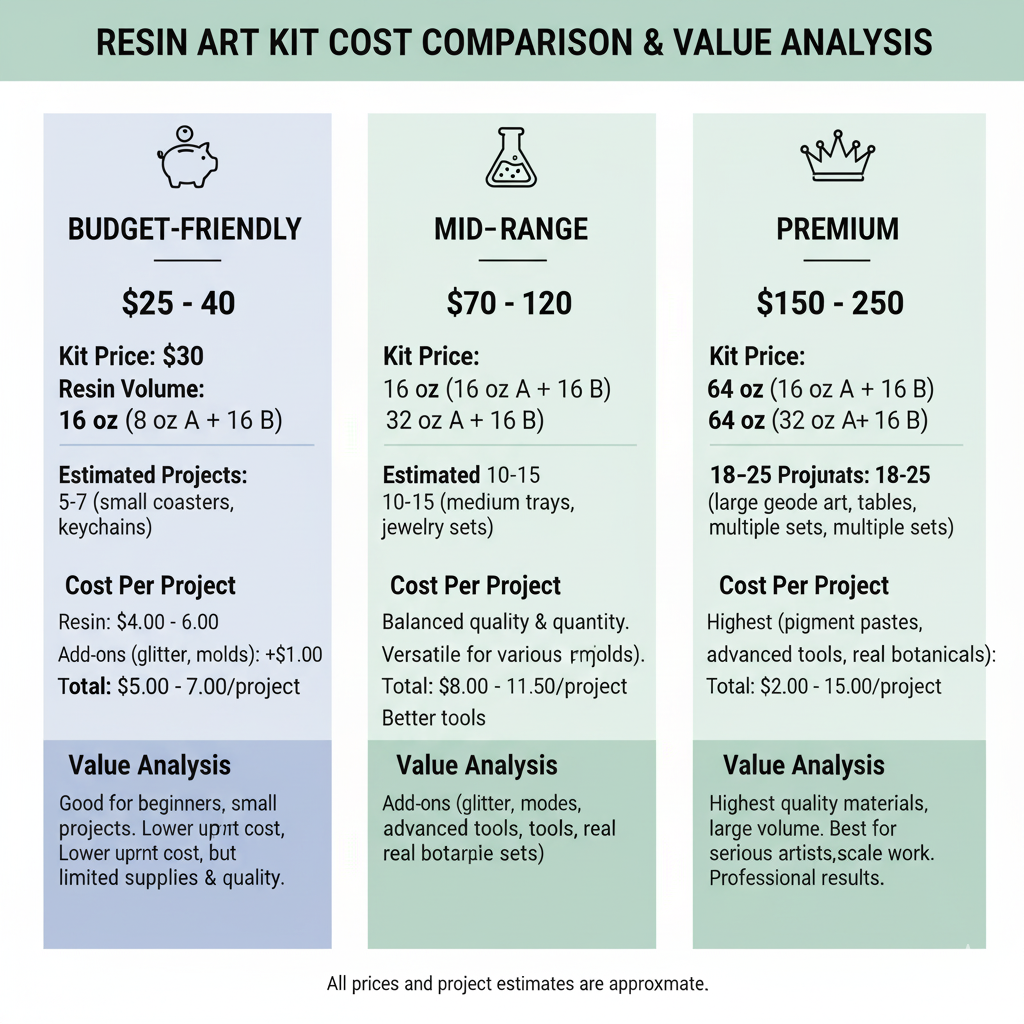 Beginner resin kits range from $20-$90. Budget kits ($20-40) work for testing the hobby, mid-range kits ($40-70) offer the best value for committed beginners, and premium kits ($70-150) provide professional quality and extensive supplies. Most people find the $50-60 range hits the sweet spot.