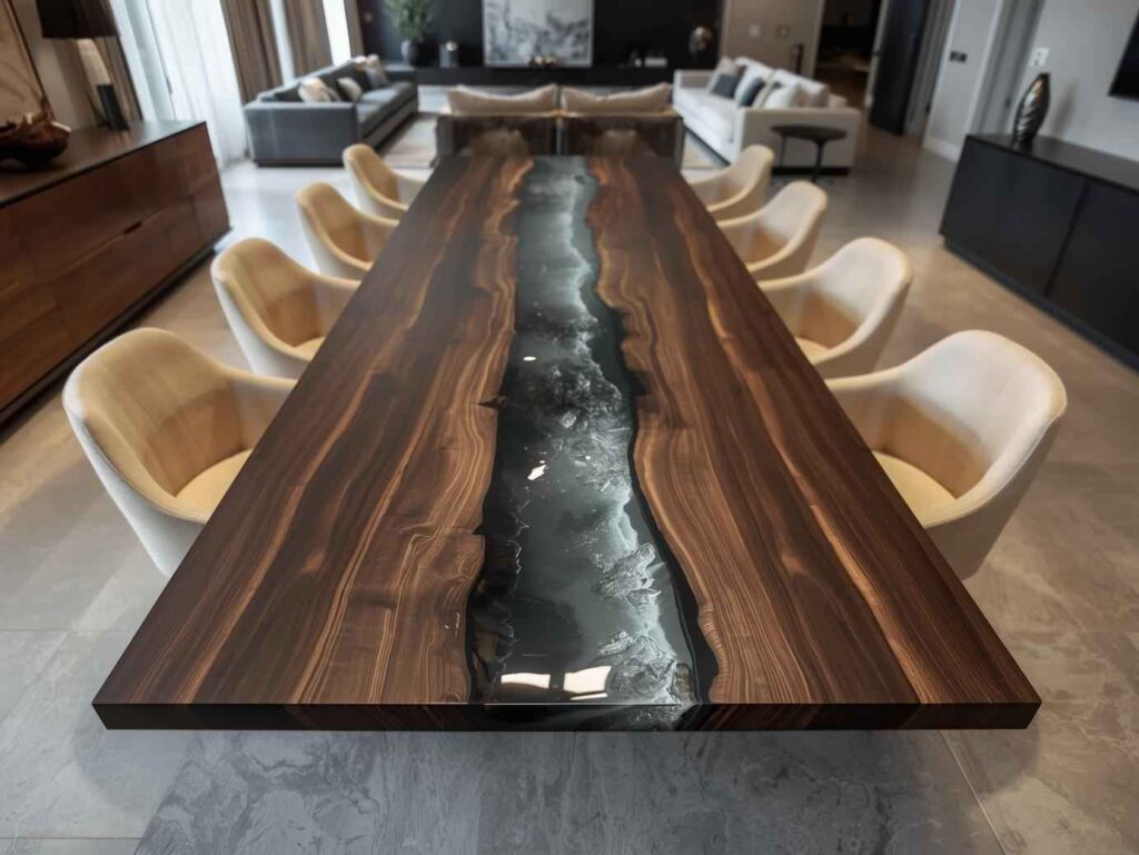 In 2025, we have moved away from the “plastic-wrapped” look of thick high-gloss epoxy over the whole table. The trend is tactile reality.