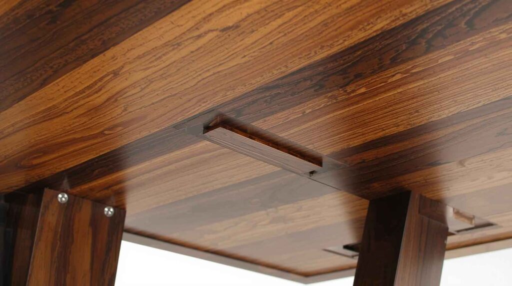 Wood moves. Epoxy does not. If you screw legs directly into the wood, the table will crack when the seasons change.