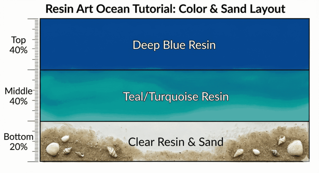- Pour Clear Resin: Cover the remaining 20% over the sand.